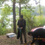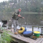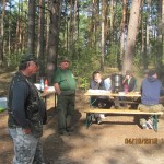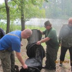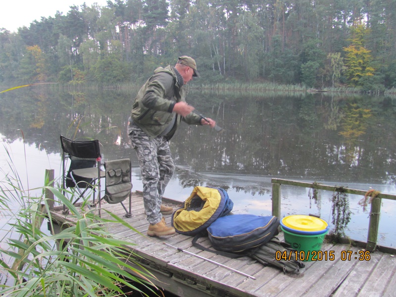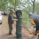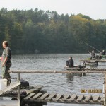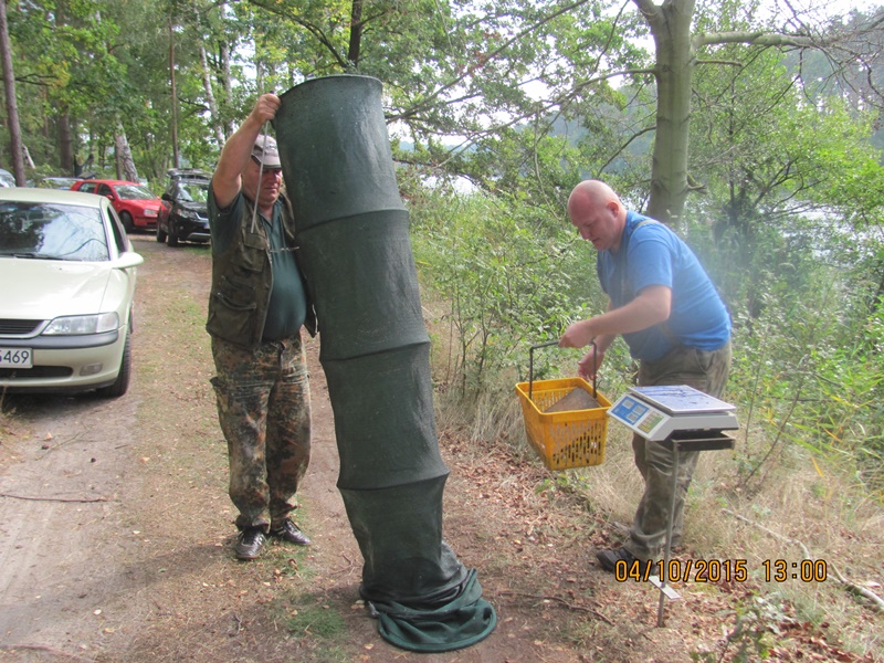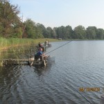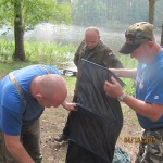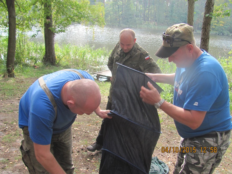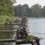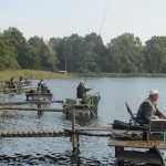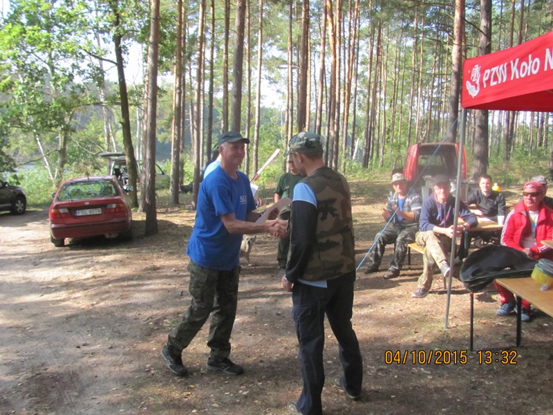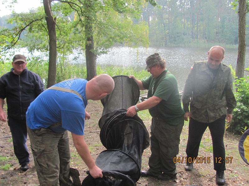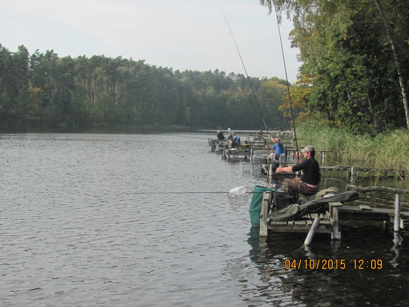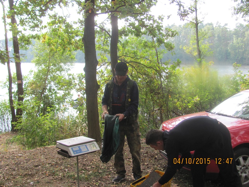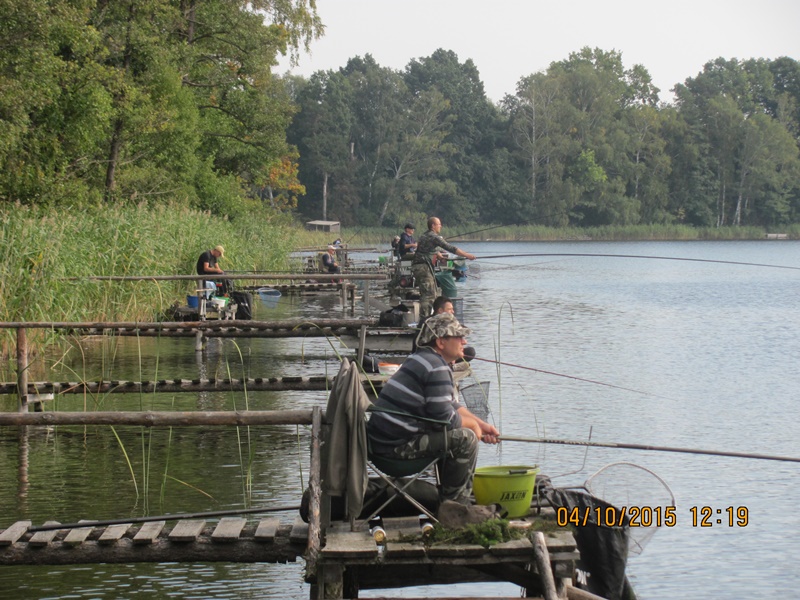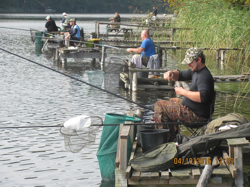 Po odprawie i zachwytach z powodu kapitalnego dojazdu do plaży po byłym ośrodku wykonanym przez Nadleśnictwo, przez tradycyjne 4 godziny wędkarze borykali się z drobnicą, moczarką kanadyjską i chwilami wiatrem wiejącym w twarz, a powodującym problemy z punktowym ustawieniem spławika w lukę pomiędzy wszechobecnym „zielskiem”. Trzeba przyznać, że na dzień dzisiejszy jesteśmy bezradni w walce z roślinami, które zdominowały dno naszego jeziora do tego stopnia, że w dużej mierze losowanie stanowisk wpływa na wynik końcowy zawodów.