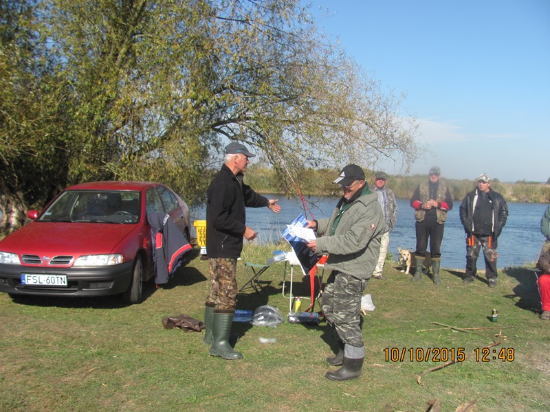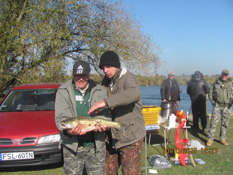 10 października br. 17 wędkarzy stawiło się nad brzegiem rzeki Warty, chcąc zakończyć sezon spinningowy z tarczą. Niestety parogodzinne poszukiwania okoni, sandaczy, szczupaków czy boleni wypadły poniżej oczekiwań. Zanotowano kilka holów szczupaków i okoni, ale były one niewymiarowe. Jedynym wędkarzem, który mógł pochwalić się rybą zgodnie z regulaminem okazał się kol. Jerzy Kot, który wyholował pięknego 2,5 kg sandacza. Gratulacji kolegów nie było końca. Chociaż jeden uratował honor Koła. Pogoda w dniu zawodów nie rozpieszczała, było zimno i wietrznie. Były to bardzo dobre warunki do spędzenia czasu przy ognisku. Dla odmiany dla uczestników zawodów, organizatorzy zaproponowali kiełbasę nie z grilla a upieczoną na patyku z ogniska, czym wywołali bardzo duże zadowolenie. Po 5 godzinach rywalizacji zakończono nierówny pojedynek z naturą. Chociaż były to ostanie nasze zawody spinningowe, zgodne z kalendarzem to wierzę, że nadarzy się jeszcze okazja w tym roku do spotkania na łowiskach w większym gronie kolegów. Pomimo bardzo przeciętnego w tym roku sezonu, bez rewelacyjnych wyników, życzę kolegom dużych jesiennych drapieżników.