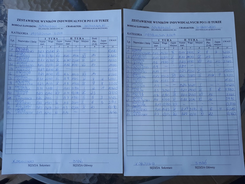 W drugiej turze powtórzył sukces – 450 sztuk uklei przy wadze 5930g dało ponownie 1 pkt sektorowy i łączną wagę 10820g . Drugi był Marek Krupa, który w pierwszej turze zdobył 1 pkt sektorowy a w drugiej 4, co dało 5 punktów sektorowych. Trzeci był kol. Jan Korolewicz: 1 tura – 2 w sektorze, 2 tura – 3 w sektorze, razem 5 pkt sektorowych. Między Jankiem a Markiem przy jednakowej ilości punktów decydowała waga ryb złowionych w dwóch turach razem. Marek złowił 5910g a Janek 4425g. Walka o tytuły Mistrza i V-ce Mistrza była zacięta do samego końca. Zamieszanie jakiego dokonali w drugiej turze Michał Dybka łowiąc 4420g uklei – 1 miejsce w sektorze, Daniel Woźniak 3360g uklei – 3 miejsce w sektorze, pomieszała szyki faworytom do tytułu mistrzowskiego po pierwszej turze, którzy musieli przełknąć smak porażki.
